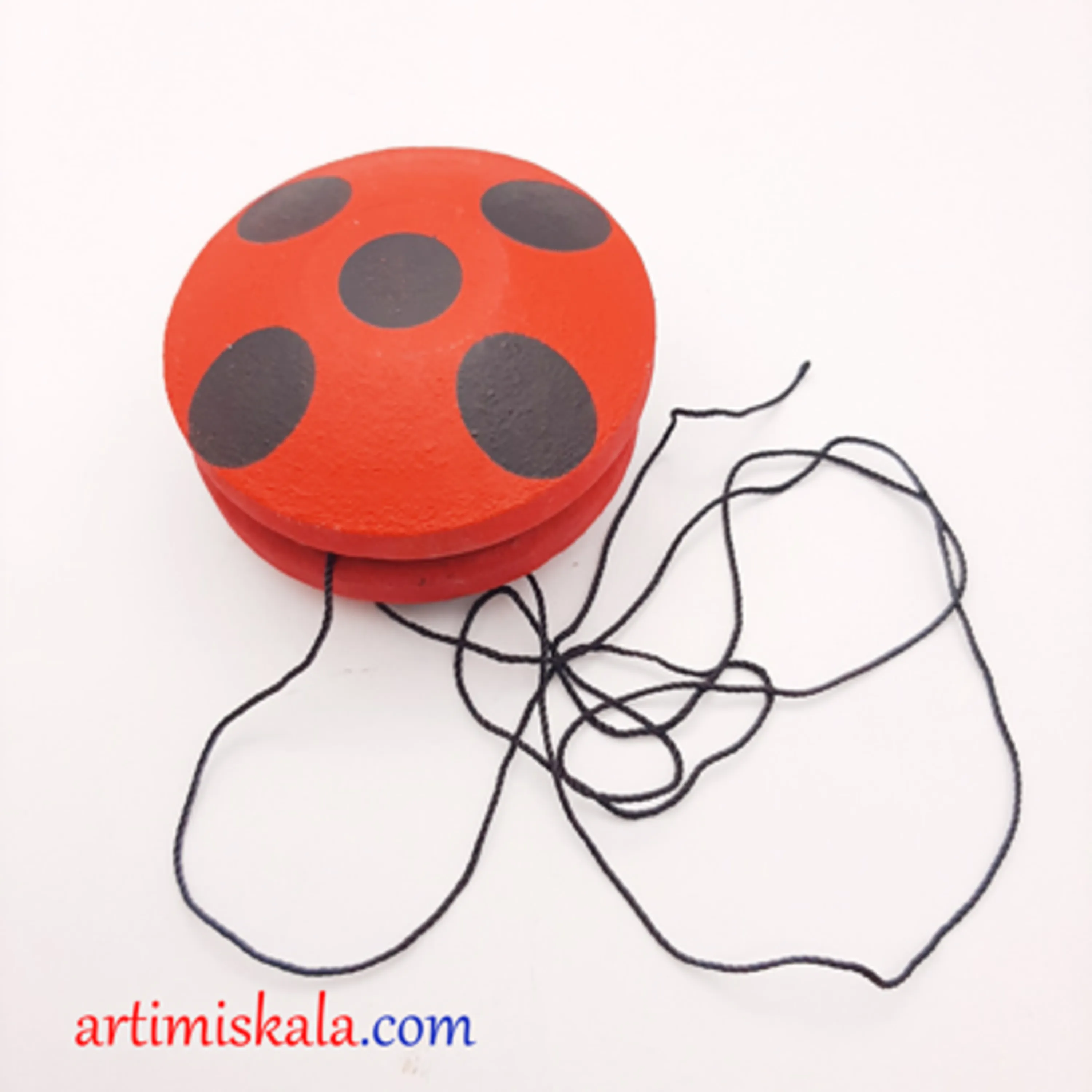 یویو ها معمولا از جنس پلاستیک یا چوب ساخته میشود که این مدل دخترکفشدوزکی از چوب ساخته شده است.