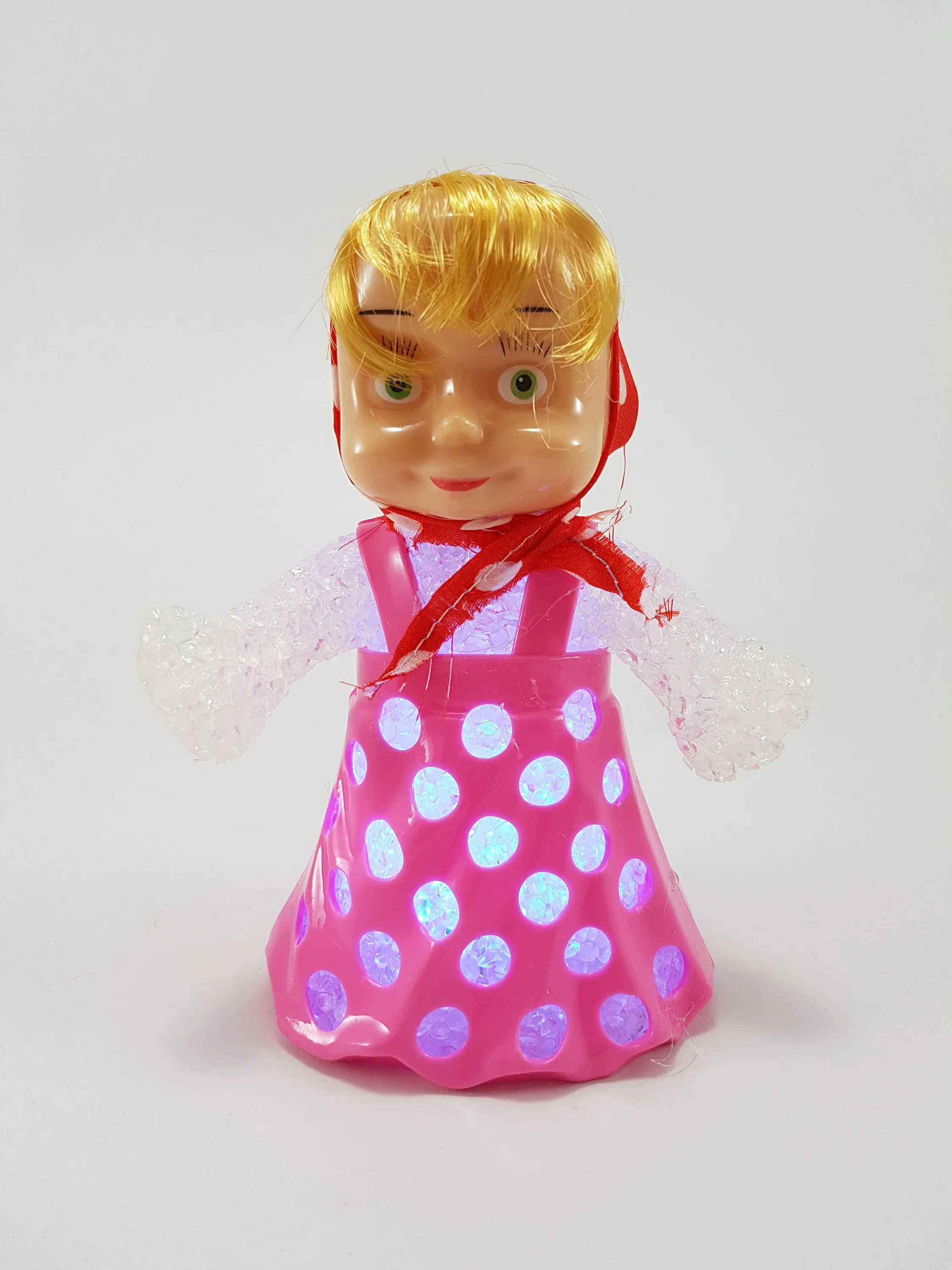 پس از روشن شدن با توجه به اینکه لامپ در دامن عروسک قرار دارد ومرتبا رنگ چراغ عوض میشود نمای زیبایی به عروسک میدهد.