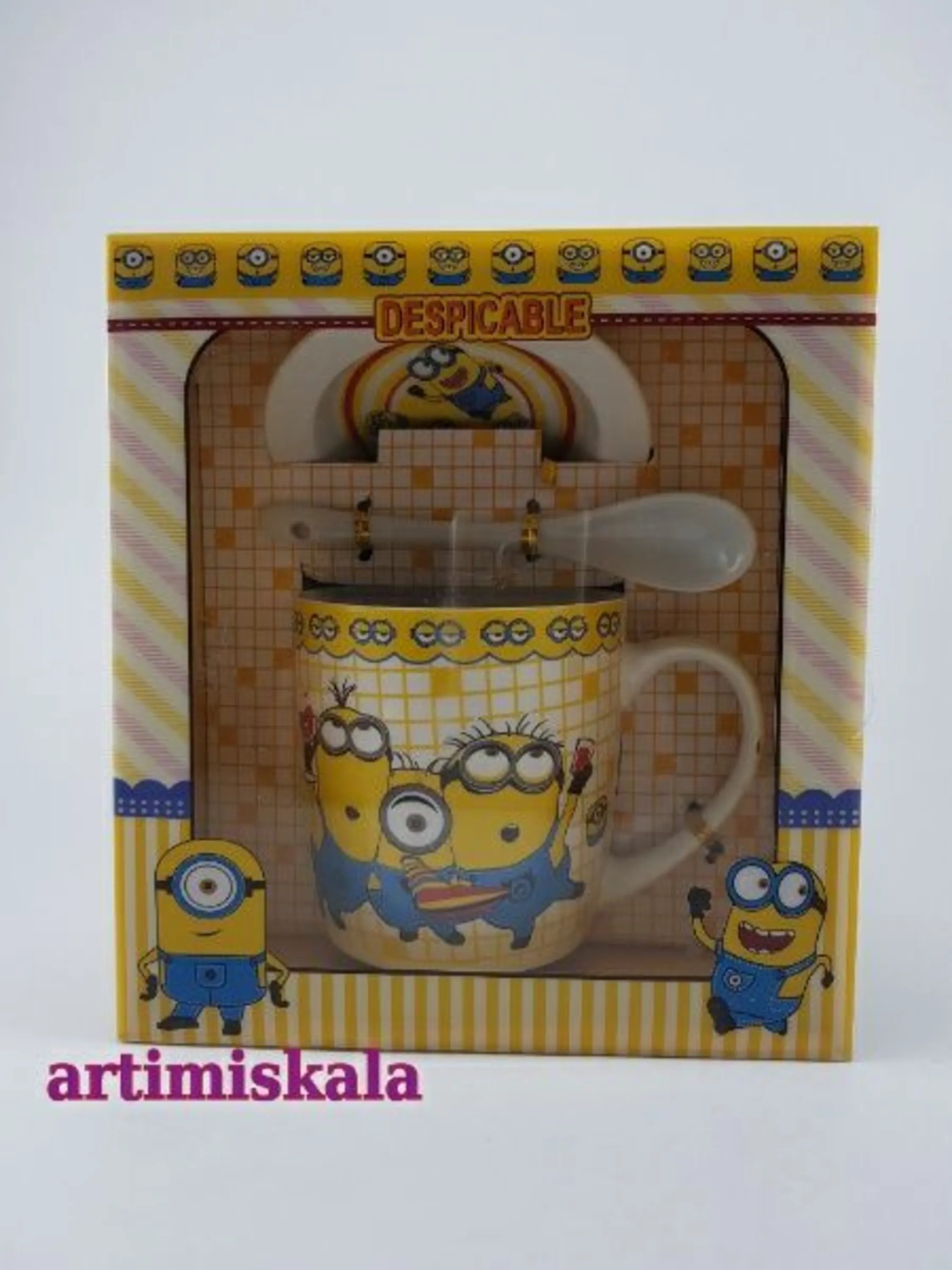 لیوان زیبای پسرانه ساخته شده از جنس سرامیک دارای زیر لیوانی با طرح مینیونها می باشد.
