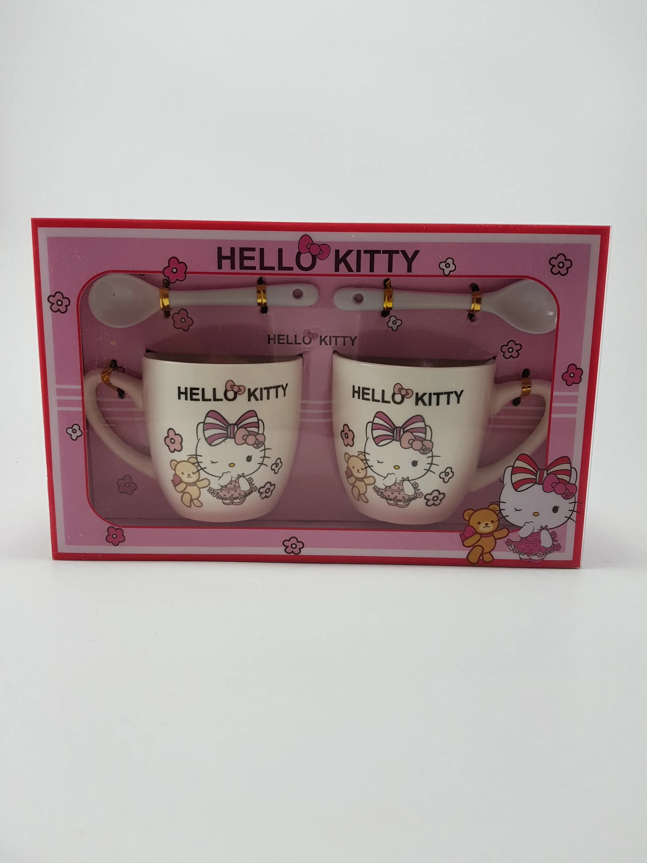 این لیوانهای کیتی (ماگ ها) ساخته شده از جنس سرامیک میباشد که دارای دوعدد قاشق سرامیکی میباشد