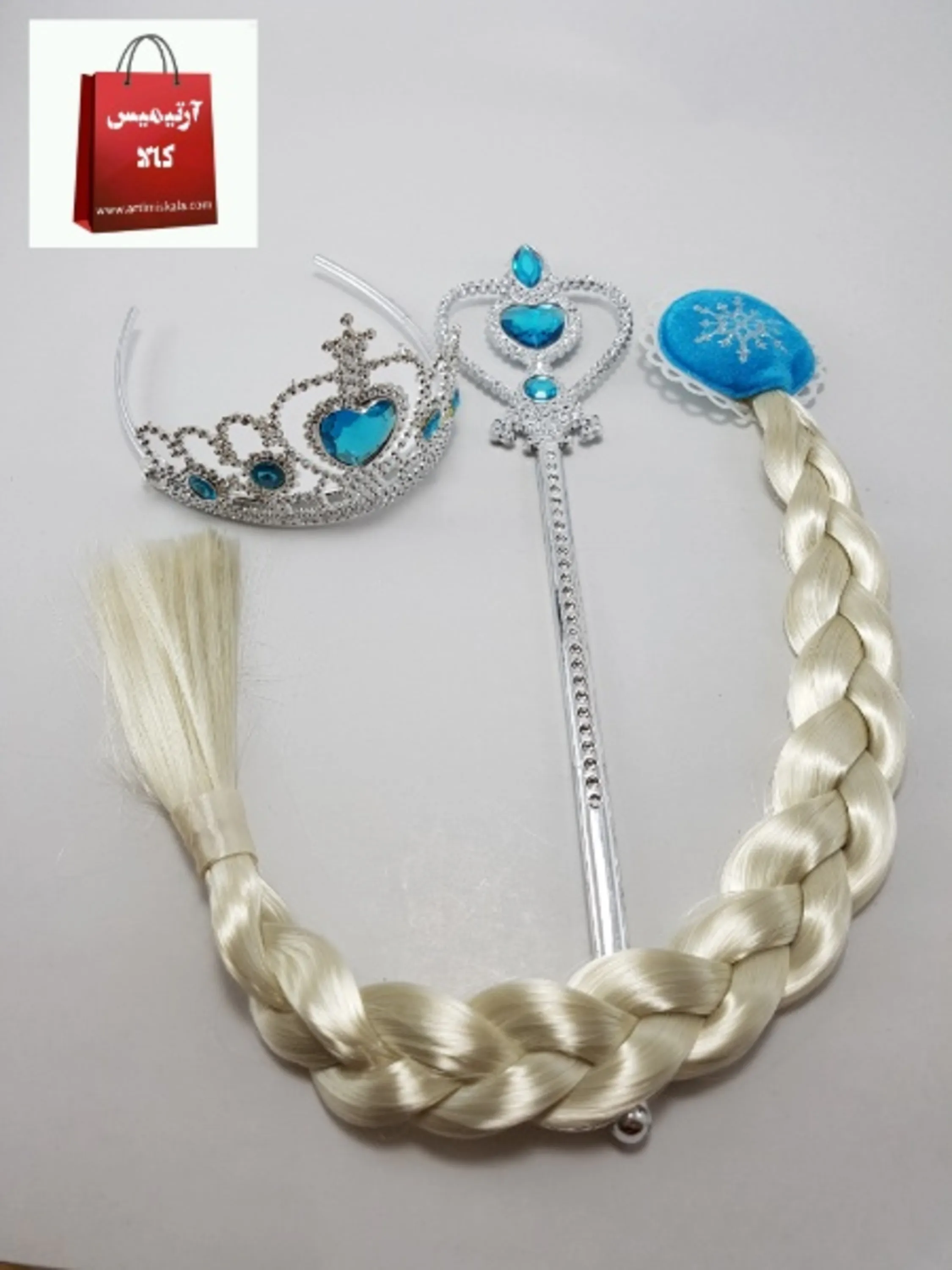 بررسی تخصصیست گیس وتاج السااین ست شامل یک عدد گیس که توسط گیره مربوطه به مو متصل میشودیک عدد تاج که بر روی سر قرار میگیردویک عدد چوب یا عصای جادو میباشد