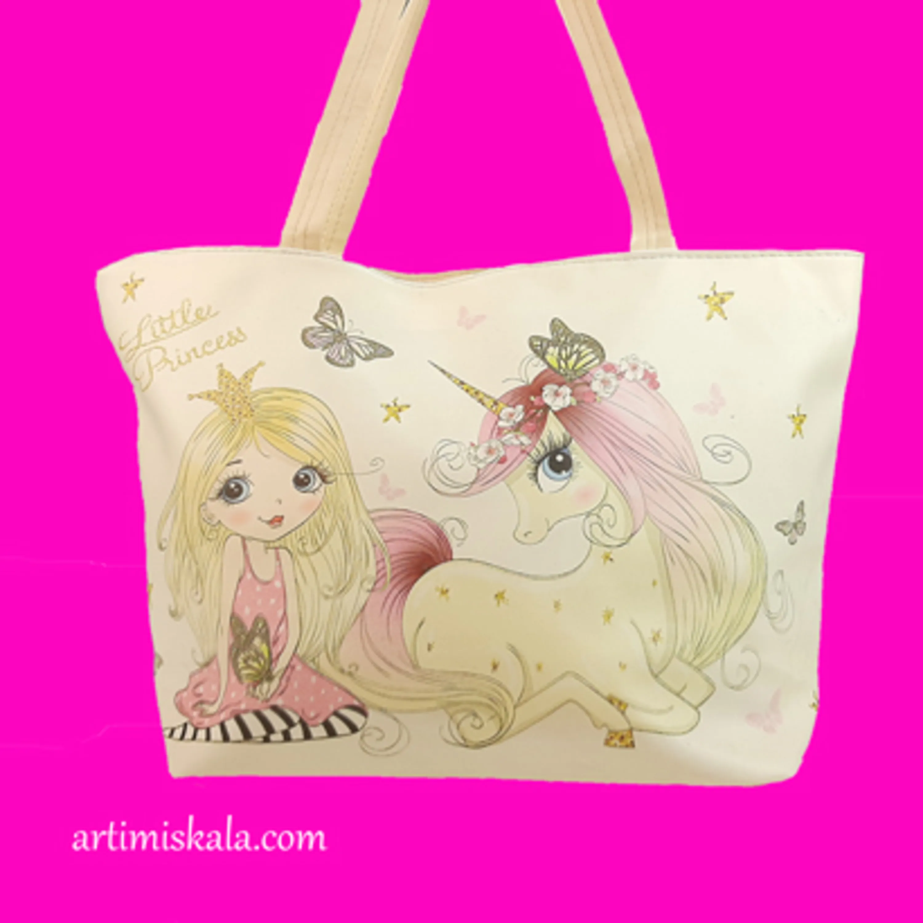 این کیف در سایز بزرگ میباشد و به راحتی لوازم مورد نیاز بیرون دخترخانم های عاشق اسب تکشاخ را درون خود جای میدهد.