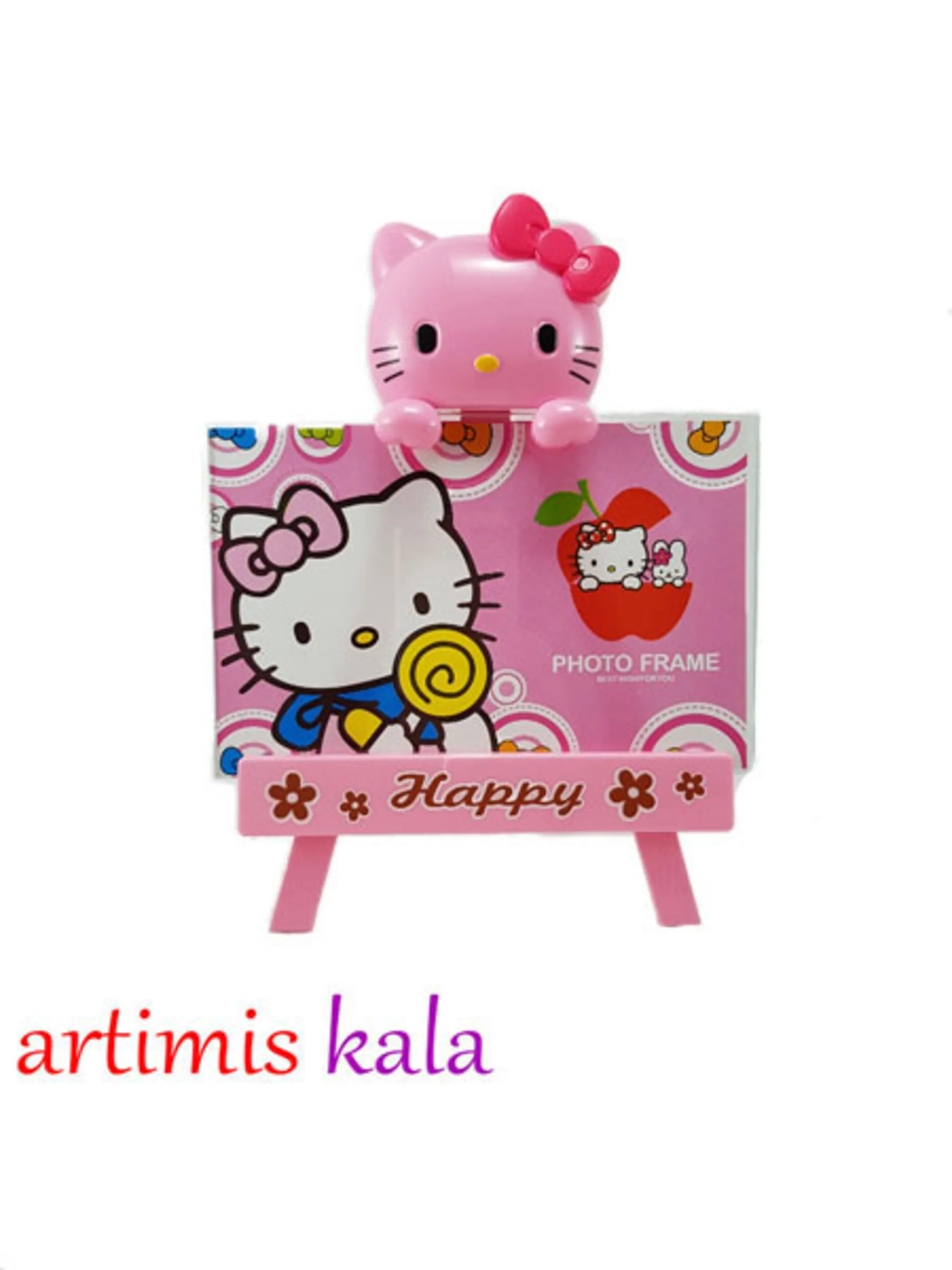 این قاب عکس زیبا ساخته شده از جنس پلاستیک و شیشه میباشد که توسط طرح بسیار زیبای هلوکیتی تزیین شده است